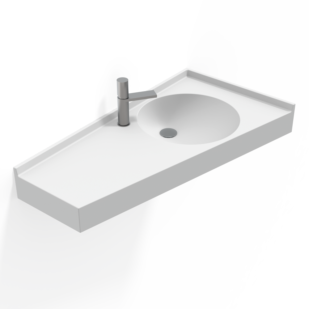 Fabriquée en pierre de synthèse haute qualité, la vasque professionnelle 990 mm garantit une surface non poreuse, une excellente résistance aux chocs, une forte résistance à l’humidité ainsi qu’un entretien simplifié, assurant une performance durable dans le temps.