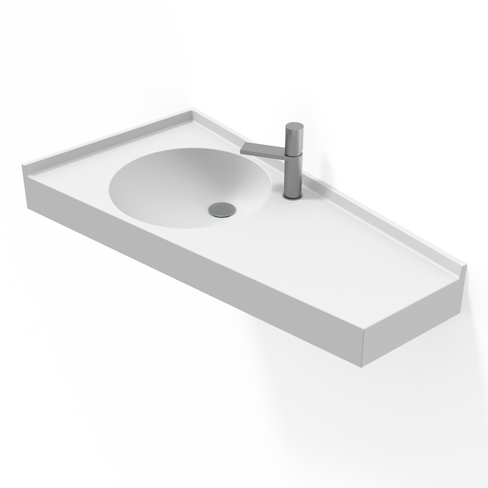 Fabriquée en pierre de synthèse haute qualité, la vasque professionnelle 990 mm garantit une surface non poreuse, une excellente résistance aux chocs, une forte résistance à l’humidité ainsi qu’un entretien simplifié, assurant une performance durable dans le temps.