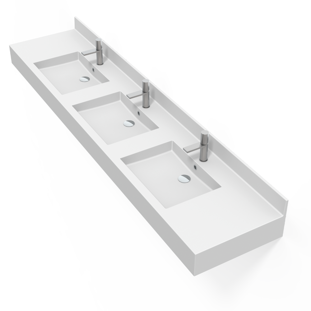 Fabriquée en pierre de synthèse haute qualité, la vasque professionnelle triple 2500 mm garantit une surface non poreuse, une excellente résistance aux chocs, une forte résistance à l’humidité ainsi qu’un entretien simplifié, assurant une performance durable dans le temps.