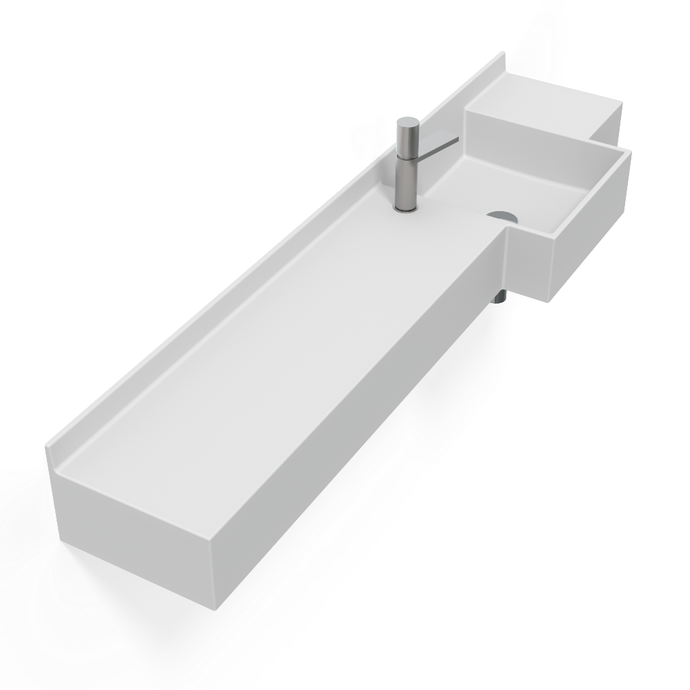 Grâce à ses 2 postes de lavage intégrés, cette vasque murale double 1600 mm optimise la gestion des flux tout en conservant une implantation élégante et fonctionnelle. Son plateau linéaire continu assure une surface de dépose confortable, facilitant l’organisation des accessoires et produits d’hygiène tout en maintenant un design minimaliste et professionnel.